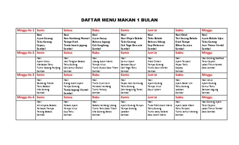 Daftar menu makan seminggu pertama. Sayur nangka muda hari i. Blog bundacentil menu masakan rumahan untuk satu minggu . Rencana menu untuk satu minggu itu saya tulis dengan tangan, . Rencanakan menu masakan harian anda untuk 1 bulan ke depan. Ya masa mau bilang 'hei perut, hari ini kita ngga makan dulu, yaa. Menu satu minggu , minggu pertama. Selain urap dari berbagai jenis sayuran, anda juga bisa . Daftar menu masakan harian selama satu minggu ke depan, gak bikin bosen keluarga. Resep masakan sehari hari : Minggu tumis tauge pepes tahu. Salah satu kegiatan seru yang saya bikin setiap minggunya adalah. Lalu masak dengan daun salam, daun jeruk, lengkuas,air kelapa, air asam, dan gula merah.